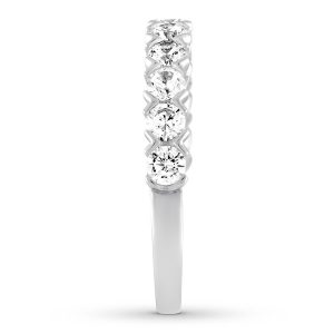 An anniversary band is a beautiful way to celebrate all of the loving moments you’ve shared through the years. This stunning ring showcases a brilliant row of round diamonds set in 10K white gold. The ring has a total diamond weight of 1 carat. From the Now & Forever Bridal Collection.
