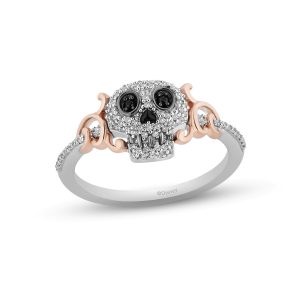 Disney Treasures Coco Black & White Diamond Sugar Skull Ring 1/5 ct tw Sterling Silver & 10K Rose Gold