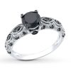 This fabulous ring for her features a princess-cut black diamond. Round black diamonds sweep along the band and frame the center to complement, while sparkling round white diamonds add the finishing touch. The sterling silver ring has a total diamond weight of 3/8 carat. Black diamonds are treated to permanently create the intense black color.