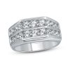 This outstanding men’s band shines with a host of brilliant round diamonds in the center and even more diamonds on the band. Crafted of 10K yellow gold, the ring has an impressive total diamond weight of 2 carats.