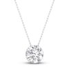 An eye-catching round diamond dances with ease at the center of this appealing women’s necklace from the Unstoppable Love collection. Additional round diamonds set in 10K white gold frame the center. The pendant, with a total diamond weight of 1/2 carat, sways from a 19-inch curb chain and secures with a trigger clasp.