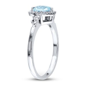 Aquamarine Heart Ring 1/10 ct tw Diamonds Sterling Silver