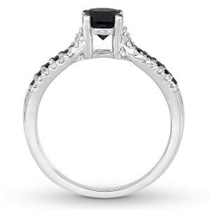 Black & White Diamond Engagement Ring 7/8 ct tw 14K White Gold
